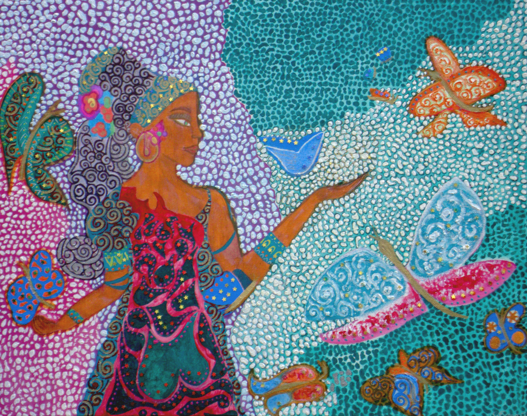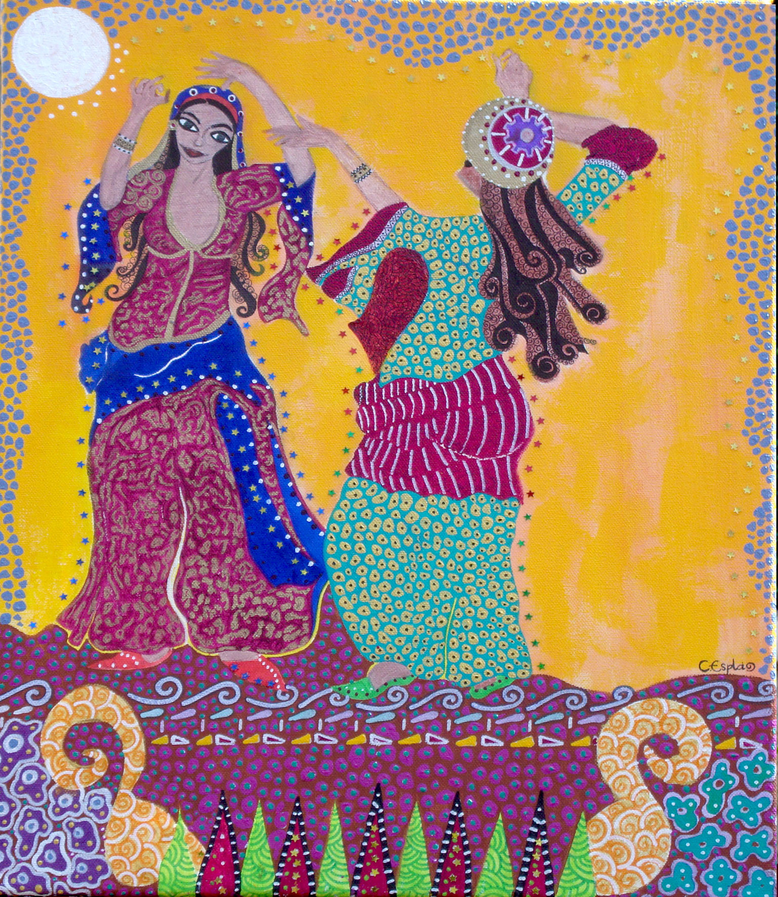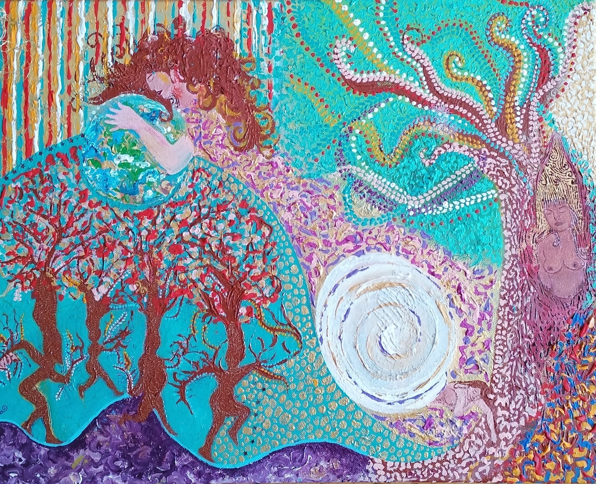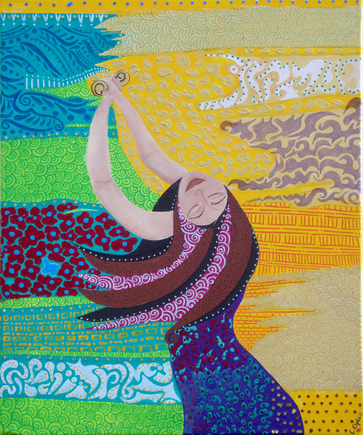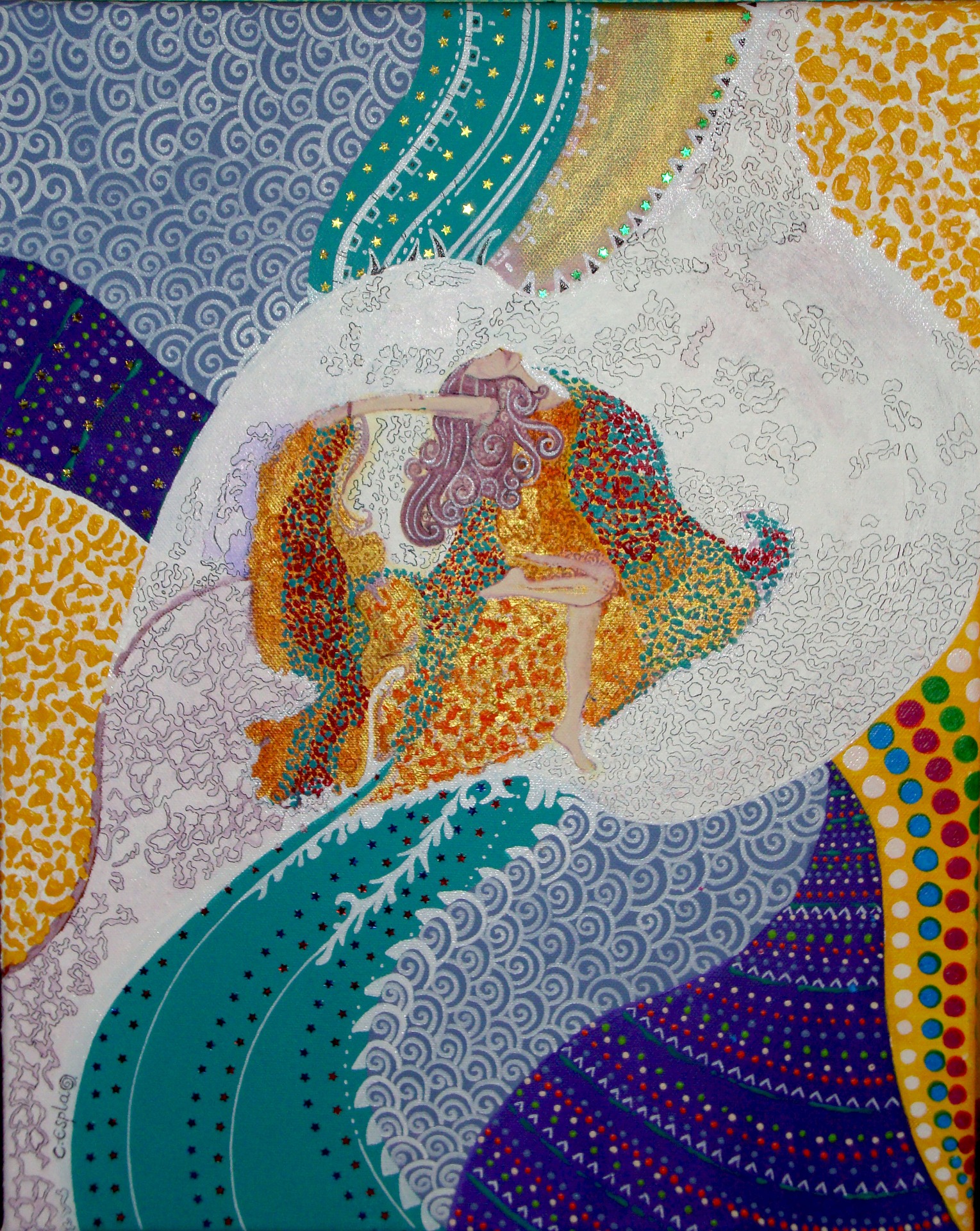 Obra versionada e inspirada en la pintura de la artista Ingrid Tusell "El embrujo". Técnica mixta con acrílicos sobre lienzo. (40x30 cm).