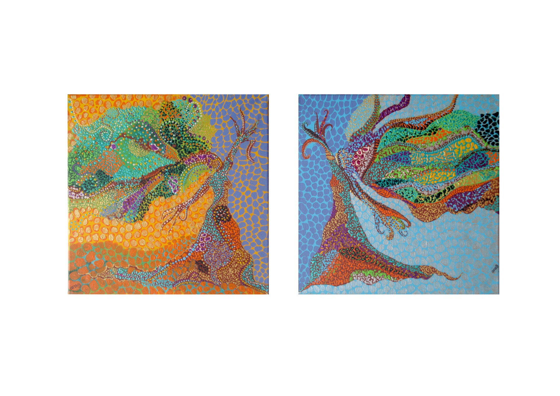 Técnica mixta con acrílicos sobre lienzos. (20x20 cm). 2014
