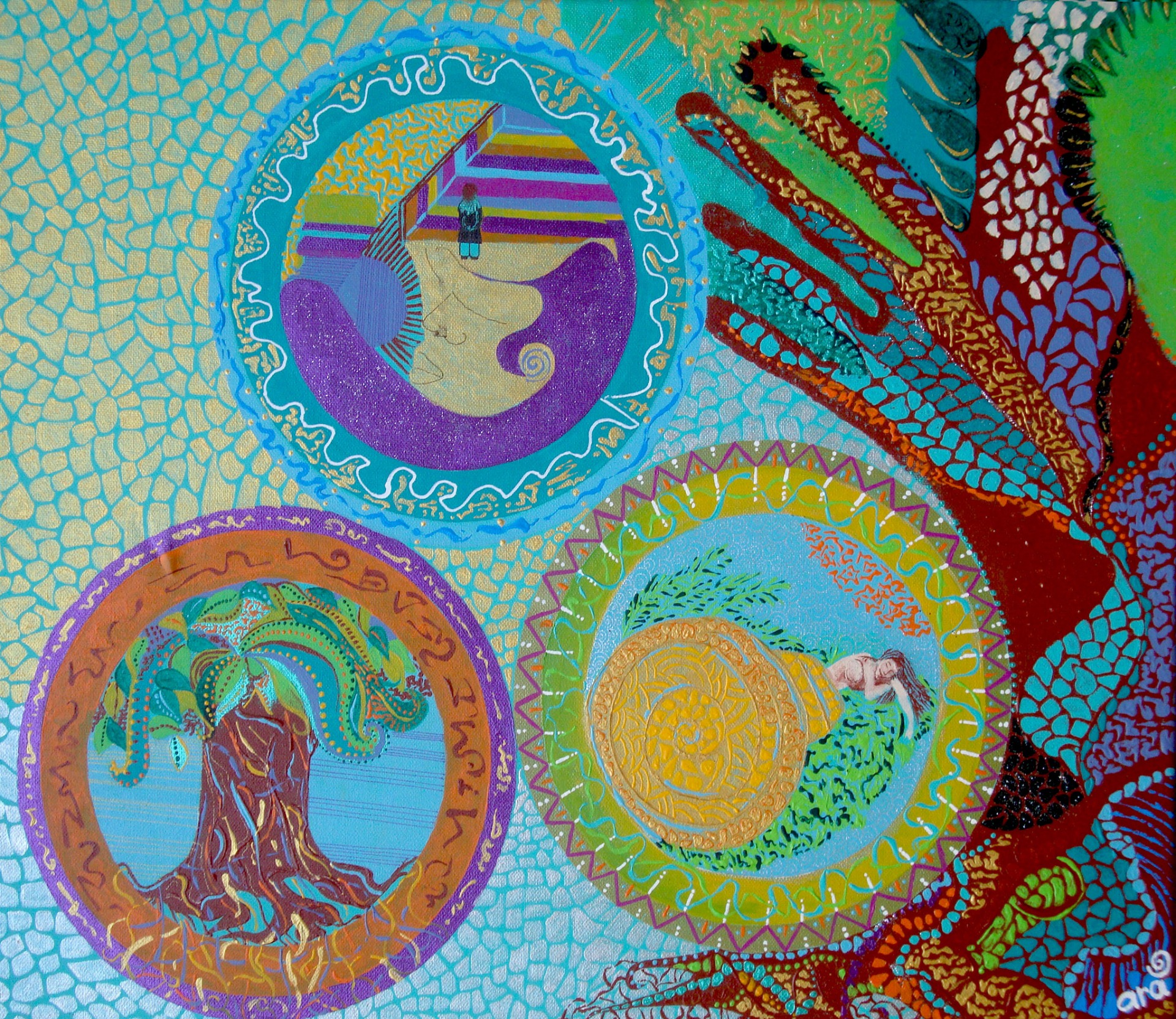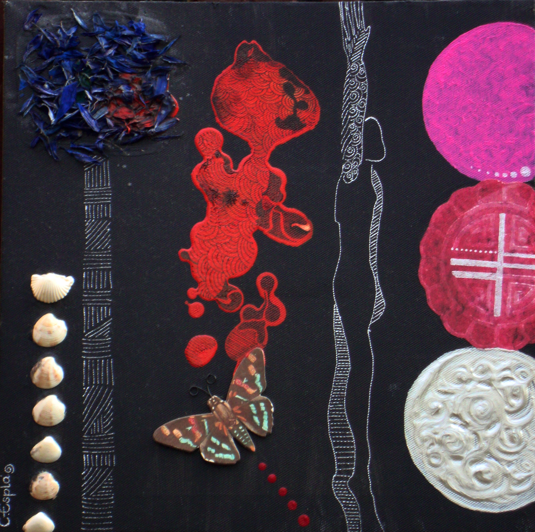 Técnica mixta con acrílicos sobre lienzo. (46 x 38 cm).